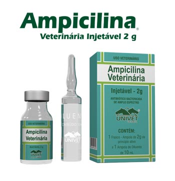 Antibiótico injetável de amplo espectro. A ampicilina é um derivado de última geração da penicilina, possuindo a vantagem de ter um amplo espectro de ação. A ampicilina age, assim, no combate a bactérias Gram-positivas e Gram-negativas, estando indicada nos casos de infecções que acometem, principalmente, a pele e os tratos respiratório, urinário e gastrintestinal.