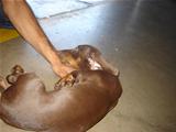 Apesar da desproporção entre o corpo longo, e o seus membros curtos, não parece carente de graça, pesado ou de movimentos limitados. Seus olhos tem tamanho médio, cor escura, são ovalados, situados lateralmente, com expressão vivaz, energética e bondosa, sem olhar fixo.Sua mordedura deve ser em pinça ou tesoura.