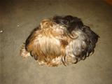 Os olhos do Yorkshire são um pouco escuros e cintilantes, de tamanho médio e expressão agudamente inteligente. As orelhas são pequenas, em forma de "V". A cauda é cortada, levada um pouco mais alta que o nível do dorso.