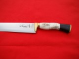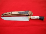 Faca F 10-28 forjada em Aço Cirúrgico, com 10" de Comprimento, 2,8mm de espessura, 3,5cm de altura, Cabo em Cervo e Búfalo. Bainha em Couro. Frete pago pelo PAC.