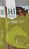 Após o desmame (6 a 7 meses): fornecer 2,5 a 3,5 kg (5,5 a 7,5 litros) de B-150. De 8 a 12 meses: fornecer 3,5 a 4,0 kg (7,5 a 9 litros) de B-150. Em períodos de escassez de capim, fornecer feno no pasto: 3 a 5 kg de feno ao dia. Alimentação para um garanhão pesando 500 kg: Época de reprodução: fornecer de 4 a 5 kg (6 a 7,7 litros) de B-150 e 5 kg de feno. Período de repouso fornecer 2 a 3 kg (3 a 4,5 litros) de B-150 e 5 kg de feno. Fornecer 7 a 10 kg de feno por dia.