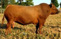 Dynamite is a powerful bull with plenty of depth and muscling. He is defintely a performance bull that will produce calves with exceptional hind quarters and growth without sacrificing calving ease.